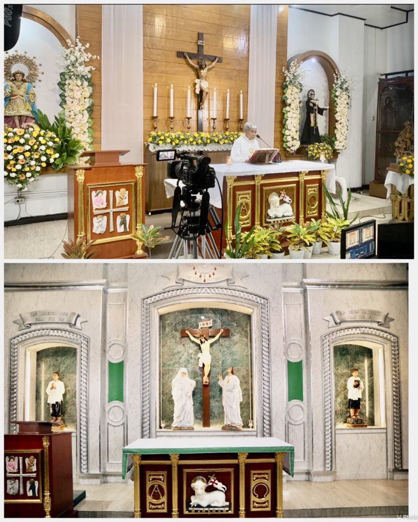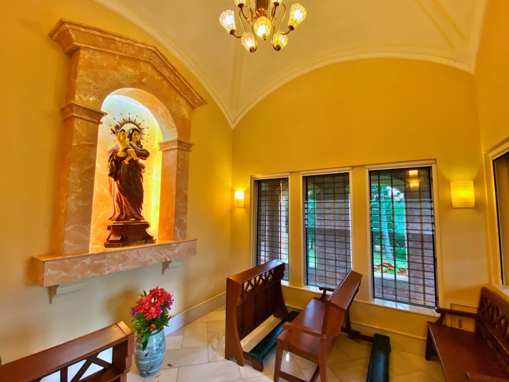 The Radyo Veritas Chapel is probably the most heavily used Catholic chapel in South East Asia if not in the whole of Asia. It is used 24/7 for broadcasts of the Mass to Asia from it’s chapel in its studios in Quezon City. The pandemic period further highlighted the importance of a chapel that would be connecting more meaningfully with the faithful who were locked down in their homes with no other possibility of attending Mass to nourish their souls in the most trying of times. The upgrading of the chapel to better help the piety of the faithful was undertaken for a better online experience for the TV & internet-based faithful. The Blessed Mother and St John, both carved in wood, were added to the presiding crucifix, while the two local saints, Lorenzo Ruiz and Pedro Calungsod were included in the lateral niches. Finishes were also improved with the introduction of silver leafed ornaments and moldings.